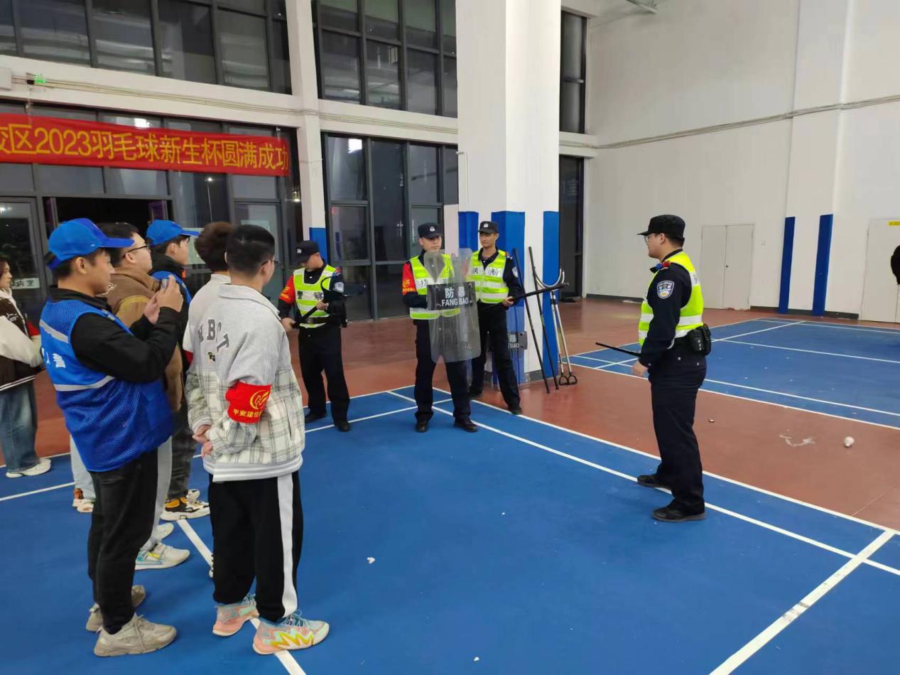 11月28日晚,为加强校园安全,提高师生的安全防范意识,岗集派出所刘剑等四名警官前往星空在线注册(中国)官方网站-注册登录北城校区,协助后勤保卫处校卫队员在校园内开展了一次别开生面的综合治安巡逻活动。此次活动不仅让大家近距离了解了警察的日常工作,还通过现场演练盾牌、钢叉、警棍等警用装备的使用方法,让师生和队员们掌握了一定的自我保护技能。