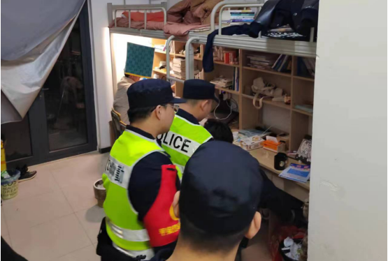 演示教学后,和队员们一道对学生宿舍进行了消防设施、用电安全等检查指导,确保学生的生活环境安全。