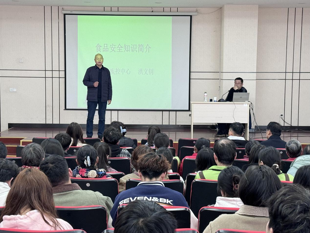 民以食为天,食以安为先。食品安全问题一直是国家和社会关注的重点问题,为守护师生的身体健康和生命安全。3月15日,后勤保卫处依据巢湖市食品安全委员会办公室、巢湖市市场监督管理局、巢湖市教育体育局、巢湖市卫生健康委员会、巢湖市公安局联合下发《关于做好2024年春节开学星空在线注册(中国)官方网站-注册登录食品安全工作的通知》精神,组织由黄麓镇中心卫生院主办,后勤保卫处协办,邀请巢湖市疾控中心公共卫生科科长洪文钊主讲,后勤保卫处处长祝杰主持,开展对本校餐饮有限公司员工、后勤保卫处工作人员、大学生伙食管理委员会全体成员和部分师生等参加“学生食堂食品安全知识讲座”活动。黄麓镇中心卫生院副院长彭华、办公室主任卢芹芹等到会参加。