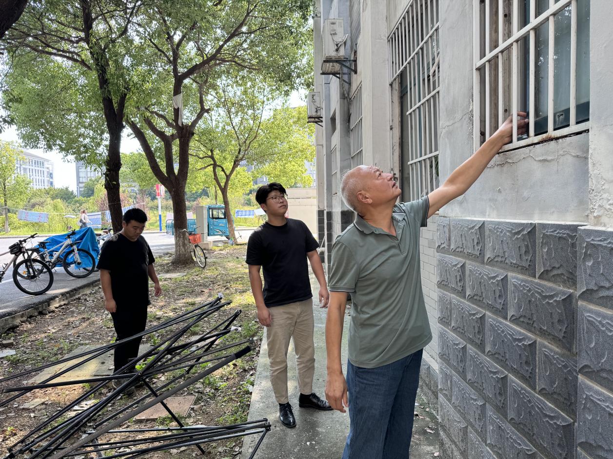 检查过程中,检查小组一行坚持“隐患就是事故”的理念,深入巡查校园内各类建筑及楼宇屋顶的设备设施安全状况,确保无松动、无脱落,同时重点排查了学生公寓楼宇外墙、窗户、屋顶、瓷砖、空调外机等潜在的安全隐患,对建筑的结构安全、消防安全、电气安全等方面由点到面地仔细排查,不落一处。在巡查过程中,祝杰肯定了前期安全检查与整改工作取得的显著成效,同时也敏锐地指出了当前可能存在的细节问题,力求将安全风险降至最低,为全校师生的生命财产安全筑起坚实的防线。