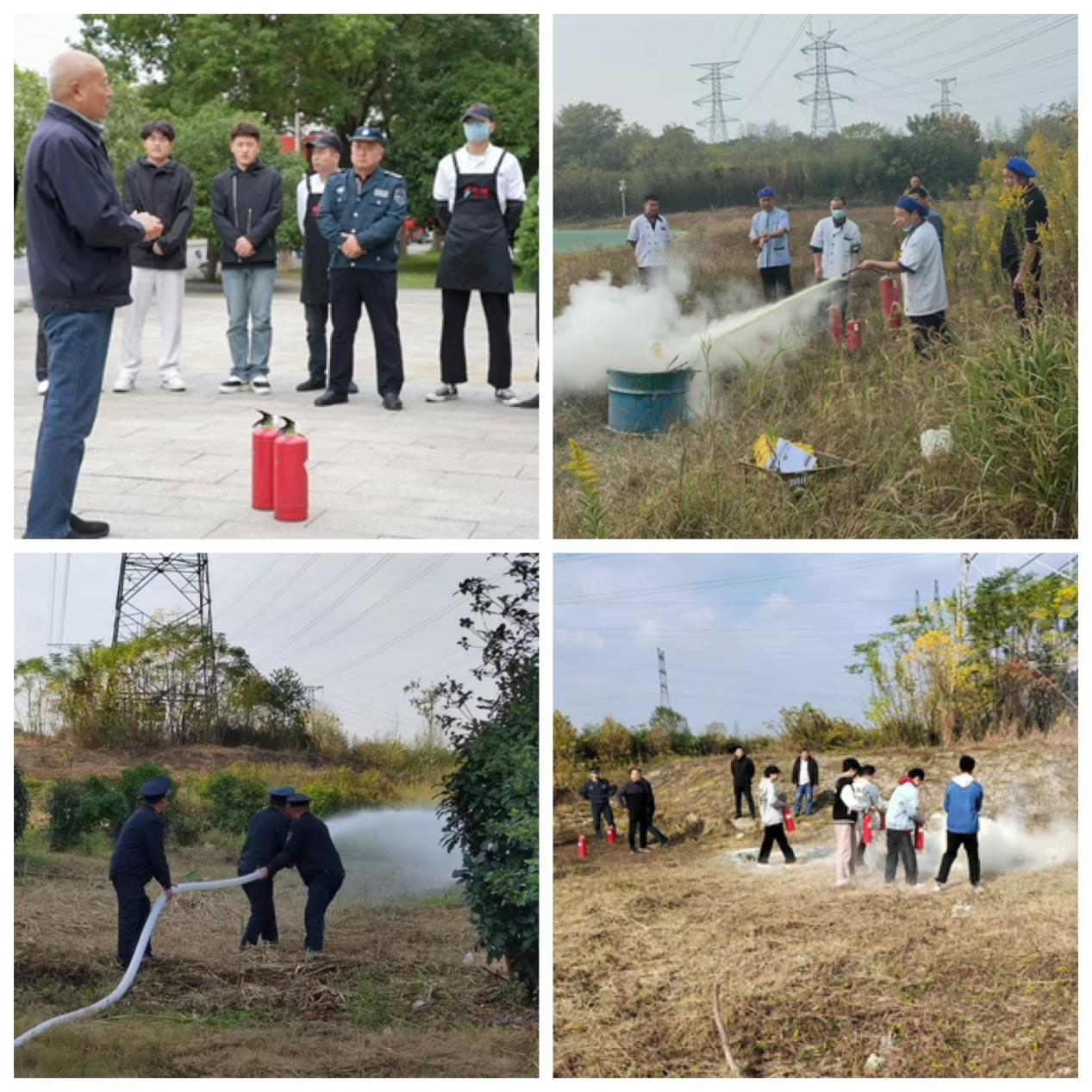 系列四:开展灭火实操培训。祝杰、蒯智林分别带队详细讲解了手提式干粉灭火器、消防水带、水枪、灭火毯的原理及使用方法。大家在认真听讲及观摩后,按照干粉灭火器要掌握“一提二拔三对准”的使用要领,亲自体验了现场灭火的过程,面对燃烧的火堆,表现的十分沉着,熟练地按照灭火的步骤和方法,将燃起的火势迅速成功地扑灭,达到了冷静沉着面对突发火情,成功快速灭火的消防标准。