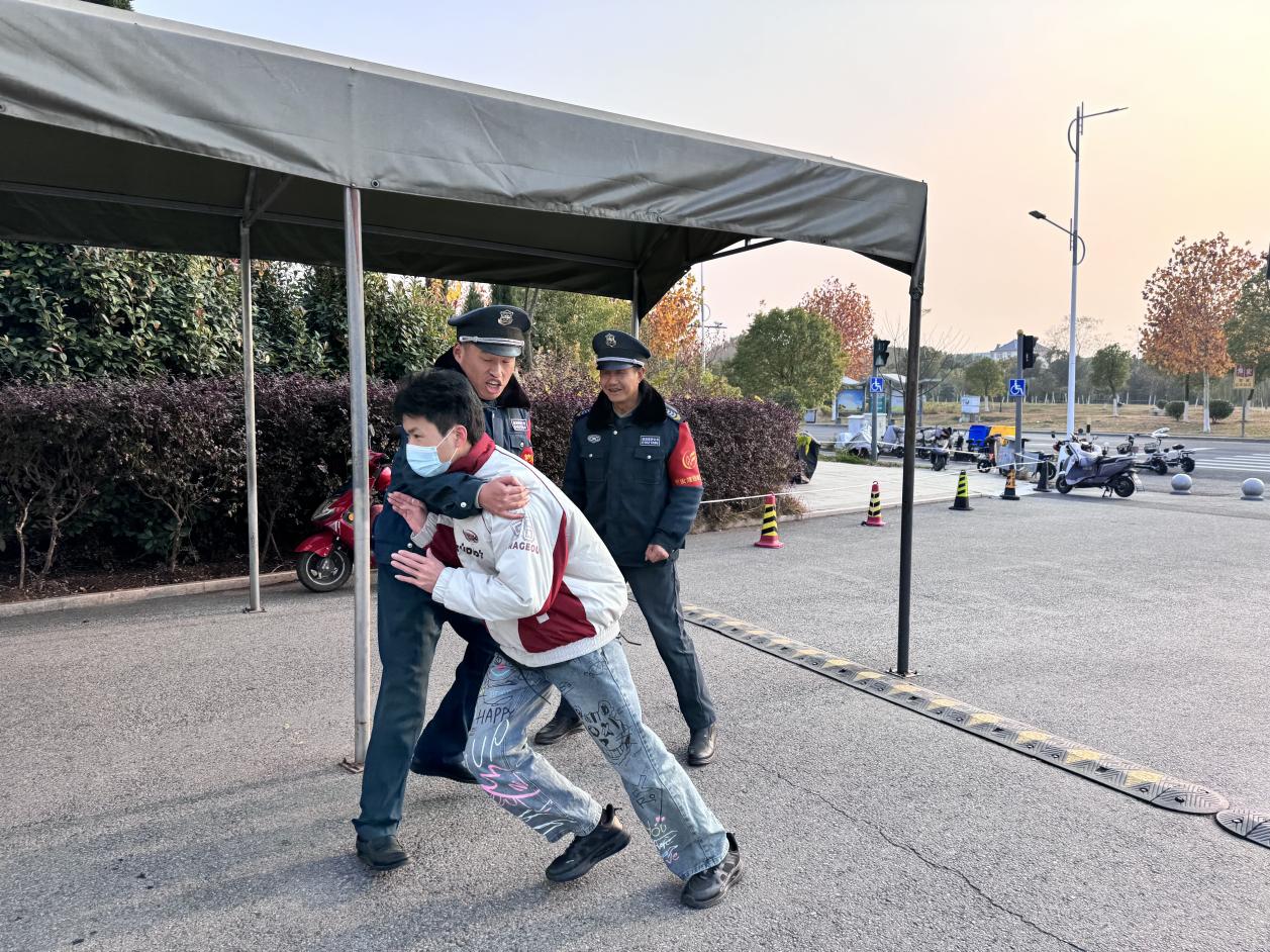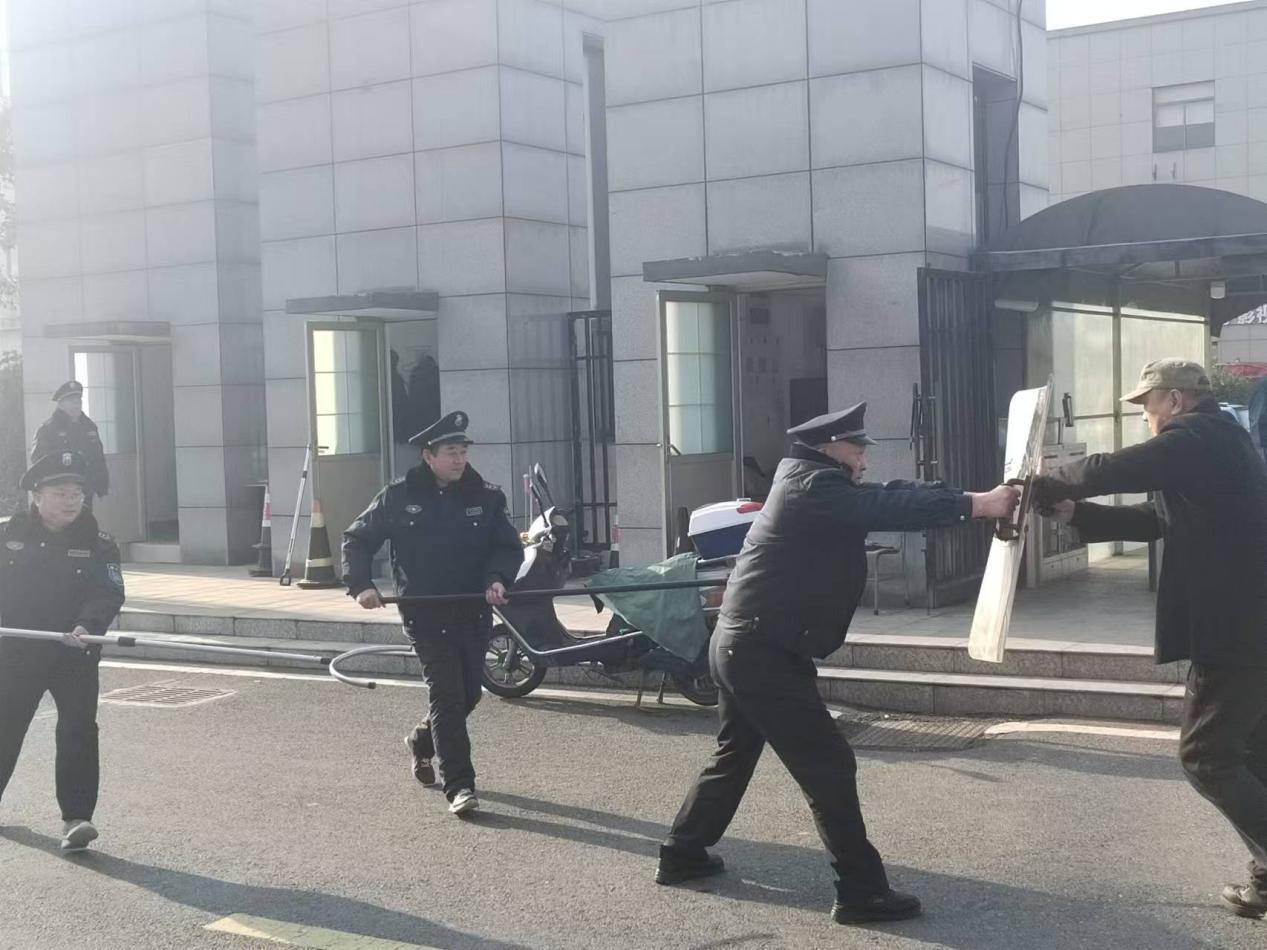 随着总指挥祝杰向两校区同步下达“演练开始!”指令,一男子不听询问直冲校门,保安人员迅速启动紧急预案,第一时间与“歹徒”交涉、周旋,制止其靠近学生,同时向星空在线注册(中国)官方网站-注册登录后勤保卫处汇报及拨打报警电话并向全校师生发出预警信号。面对危险的“歹徒”,保安人员利用手中的各种防暴工具,奋力与“歹徒”周旋搏斗,阻止“歹徒”冲进校园。通过短短几分钟时间便将“不法分子”制服,警报随之解除,星空在线注册(中国)官方网站-注册登录很快恢复了正常的秩序,演练活动圆满结束。