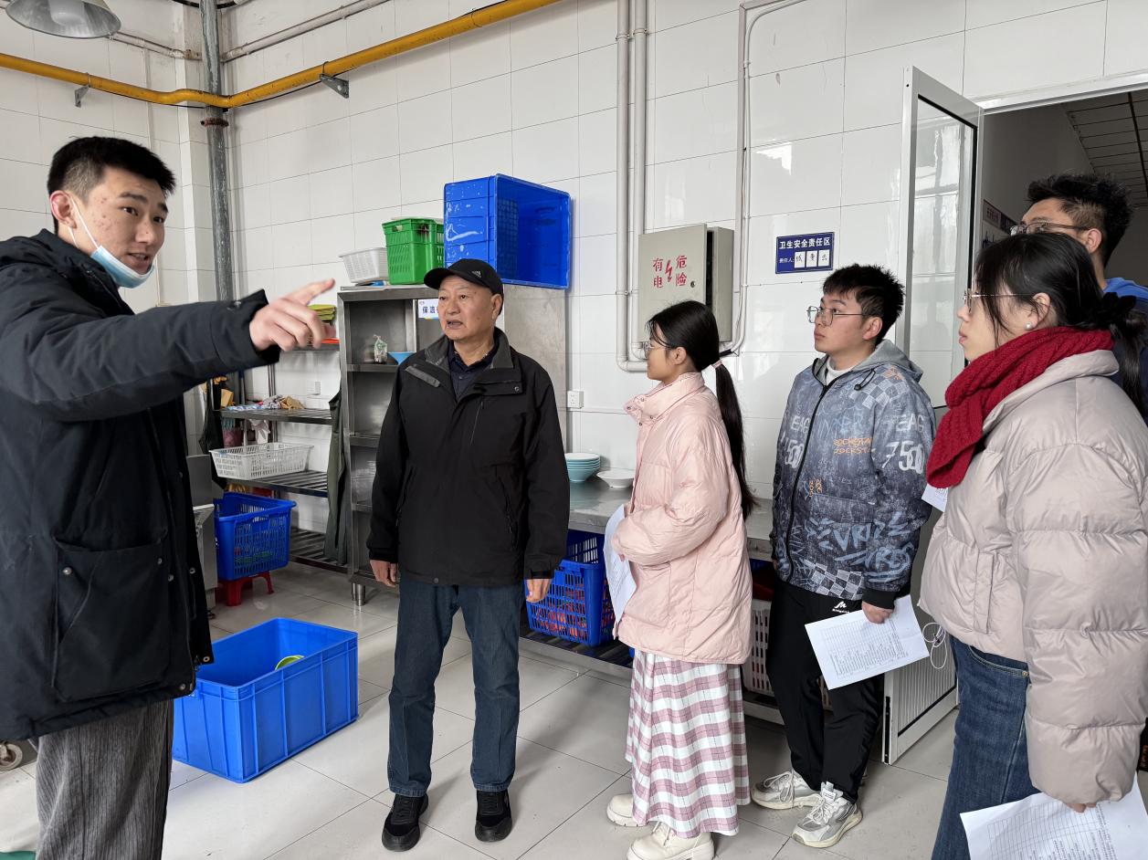 “民以食为先,食以安为先”,为守护师生舌尖上的安全,12月25日,后勤保卫处处长祝杰及工作人员组织学生伙食管理委员会成员在滨湖校区通过“四不两直”的方式开展学生食堂食品安全卫生大检查。此次行动旨在通过严格监管、真抓实干,促进食堂管理水平的全面提升,为师生营造一个更加健康、安全的饮食环境。