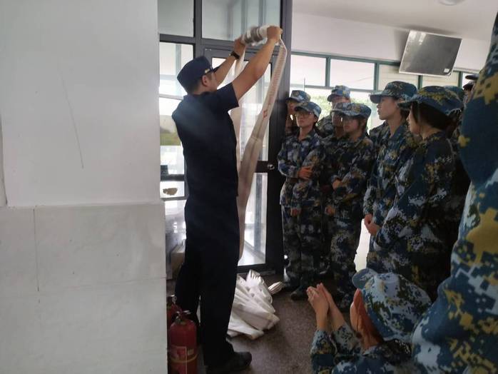 随后,朱子豪与许培生站长带领新生前往宿舍区,开展消防栓使用方法的实地教学。站长现场演示消防水带的正确连接方式,细致讲解接口对接、水带展开、阀门开启等关键步骤,并着重强调日常检查与储水准备的重要性。在站长的耐心指导下,新生和宿管阿姨积极动手尝试,成功完成消防栓与水带的连接并喷出水柱,在实践操作中切实掌握了基本消防技能。