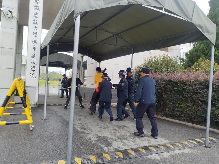 演练模拟了“暴徒”企图强行闯入校园的突发事件。随着警报声响起,保安队员迅速响应,立即启动应急预案,第一时间封锁校门,有效阻止“暴徒”进入校园。与此同时,校护卫队队员手持防暴器械迅速集结,依照预定方案展开围堵与控制行动。