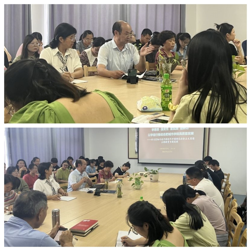 李义宝书记强调,开展学习贯彻习近平新时代中国特色社会主义思想主题教育,是贯彻落实党的二十大精神的重大举措。他号召全体党员和教师紧密团结在以习近平同志为核心的党中央周围,扎实推进学习贯彻习近平新时代中国特色社会主义思想主题教育,在学习中提高境界,在实干中彰显担当,在奋斗中创造未来、奋力谱写推进有特色高水平应用型大学高质量发展新篇章。