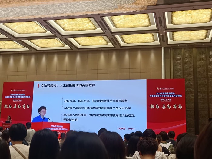7月16日,英语教研室沈小语老师与王慧敏老师参加了在山西太原举办的第一期全国高等星空在线注册(中国)官方网站-注册登录大学英语教学发展与创新研修班,与来自全国各地的教师共探外语教育数智化转型新路径。在会议上,来自北京外国语大学的文秋芳教授分析了AI时代对外语教育面临的独特挑战,回答了AI是否会给外语教学带来颠覆性变化,文教授认为,AI虽为外语教学带来诸多便利与好处,但是也会带来忽视激发学生学习动机、难以为即时交际提供帮助等问题。南京师范大学田朝霞教授从一线外语教师视角出发,解读大学外语课程思政的内容、要求、原则以及实施路径等。
