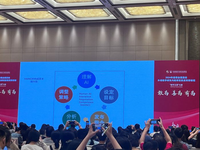 着,北京外国语大学文秋芳教授演讲主题为AI时代的外语教育会经历颠覆性革命的疑问讲述AI对往后的外语教学有着怎样大的改变北京外国语大学张虹教授以外语教材的有效使用为主题做铺垫讲述数字化时代背景下英语教学的教材使用