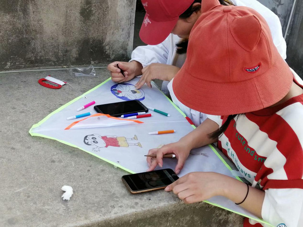 天公不太作美,火热的太阳炙烤着大地,但阳光似乎怕晒坏了这帮制作风筝的小可爱们,转而让丝丝的清凉微风拂过大地,这丝凉风,不仅给在场制作风筝的学生们带来了凉爽,也给活动带来了有利的条件。完成了风筝的制作,剩下的就是放飞,当然放风筝还是需要一定的技巧,有些队伍的风筝没飞多高就落了下来,虽然风筝落地,但他们渴望的心却没有落地,在首飞失败后,手中的风筝又再次放飞,不断探索着放飞风筝的合适姿势。风筝的落下就如同人生道路上的坎坷一般,虽然坎坷很多,但只要坚持,就会如同风筝一般,飞到属于它的天空中。随着时间一点一滴的流逝,只见天空中凌空飞起各种各样的风筝,像彩蝶在空中翩翩起舞,争奇斗艳。场外的观众似乎比选手们还着急,他们时而屏息凝望,时而欢呼鼓掌,时而唏嘘不已,比赛精彩纷呈,场面热闹极了。