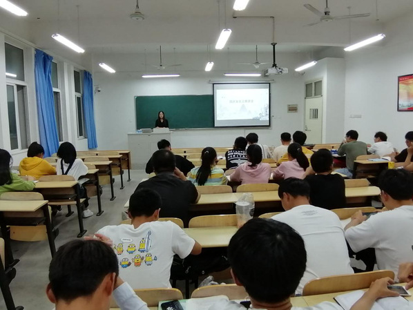 首先,郜洪营老师运用理论知识与具体事例,向同学们分享了有关国庆安全教育的主题内容与国庆70周年的爱国教育。她说道:“祖国母亲的生日即将到来,在享受假期欢愉的同时,也要切实注意自身安全,度过一个开开心心的假期”。郜洪营老师的话激励了在座的每一位同学,大家积极响应,踊跃发言,一一阐述着自己有关假期安全的经验与心得。