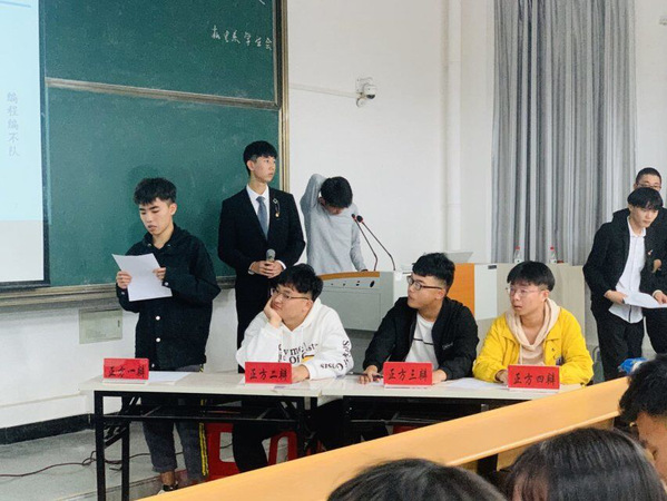 为提高学生思辨能力和创造力,丰富大学生课外生活,激发学生自主思考能力。2019年11月8日晚六点,由安徽建筑大学城市建设学院机械与电气工程系学生会主办的辩论赛初赛在南教108顺利举行。机电系19级辅导员郜洪营、机电系学生会主席姜道霖、办公室部长孙世玉、宣传部部长赵一洒、组织纪检部部长王勇、外联部部长周庚辰,出席了此次活动。