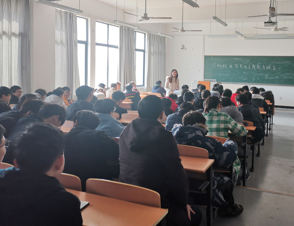 凌寒已至,而本学期十四、五周的期末考试也随着寒潮涌动的初冬一同悄然而至,降临在每一个紧张复习专业课程的城建学子的身旁,在这个期末考试即将来临之际,为了全面贯彻落实安徽建筑大学城市建设学院有关考试的要求,形成良好的诚信之风,促进考风根本好转,端正考试态度以及宏扬学生诚信精神,加强学生们的诚信意识,提高广大城建学子对考试作弊严重性的认识,杜绝考试作弊现象的发生,并为广大学生营造一个公平的竞争环境,让全体学生以积极乐观,诚实守信的态度去面对期末考试;最终达到真正树立优良的学风和校风,顺利完成本学期的期末考试为目的;机械与电气工程系17电子信息工程专业在2019年12月2日下午3点10分于南教学楼404教室举办了主题为“言而有信者,行必果”的诚信考试班会,此次班会由辅导员张懿老师所主持,17电子信息工程专业全体学生参与了此次主题班会。