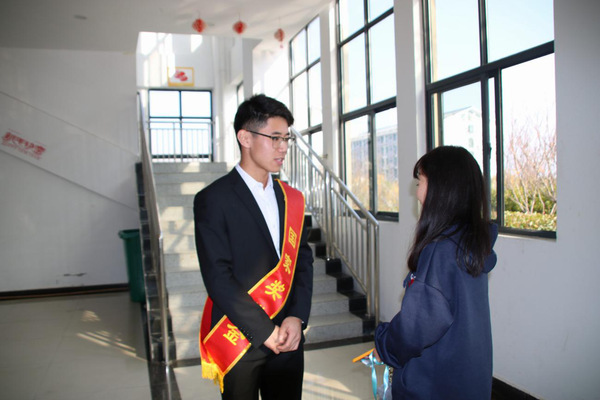 当问到平时对自己有什么要求时,刘鑫磊同学表示作为一名合格的大学生应该好好学习,尊敬长辈,热爱生活,并且要好好的享受大学时光。此外,刘同学还热情的向学弟学妹们分享了他的学习及生活习惯,他表示学习需要掌握方法和效率,不然无论花多少时间、多少精力效果都不会很好,要多多思考总结,在思考中获得新知。至于在生活中,我们应该保持每天坚持运动和健身,让自己拥有一个强健的体魄,另外我们也得多看看书,正所谓腹有诗书气自华,在书中我们会学习到许多新的知识,也会让我们拥有更多的想法。