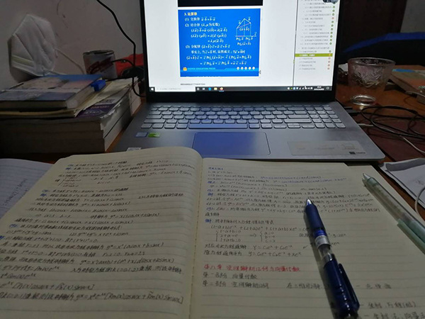 线上教学对学生的学习热情、时间管理、自律自强也提出了更高的要求。但即使“宅”家学习,同学们也依然孜孜不倦地汲取网课中的各种知识,在课上更是以笔记的方式讲内容记录下来,而当遇到难以理解的知识点时,老师们在课后、晚上都坚守巡回在各个教学群沟通答疑。