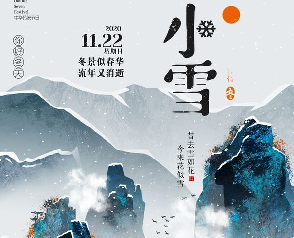 “小雪”是反映天气现象的节令。“小雪”时值阳历11月下半月,农历十月下半月。雪小,地面上又无积雪,这正是“小雪”这个节气的原本之意。古籍《群芳谱》中说:“小雪气寒而将雪矣,地寒未甚而雪未大也。”这就是说,到“小雪”节由于天气寒冷,降水形式由雨变为雪,但此时由于“地寒未甚”故雪下得次数少,雪量还不大,所以称为小雪。因此,小雪表示降雪的起始时间和程度,小雪和雨水、谷雨等节气一样,都是直接反映降水的节气。