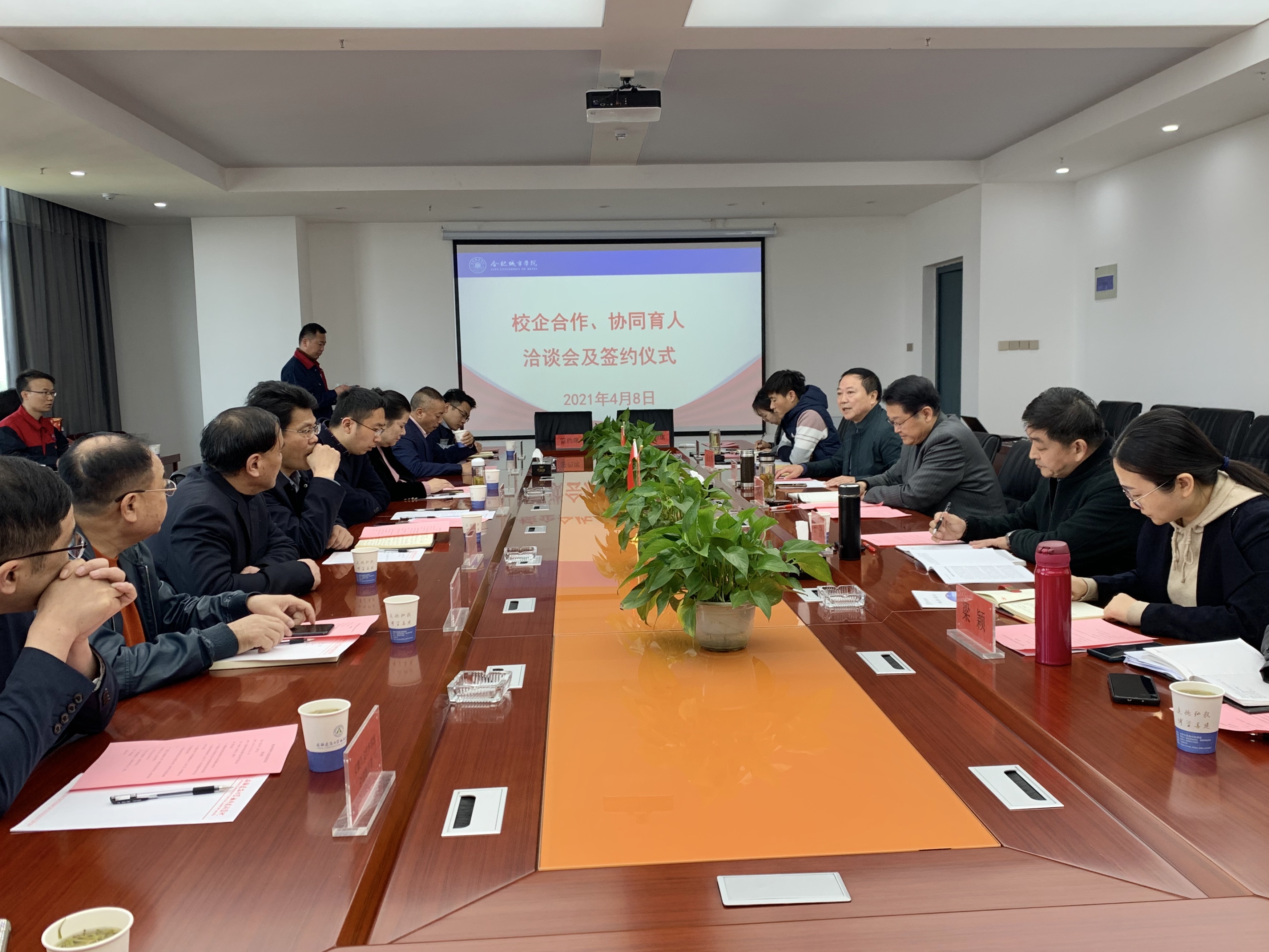 2021年4月8日上午,星空在线注册(中国)官方网站-注册登录邀请了安徽意华电器有限公司、安徽万安汽车零部件有限公司、安徽晨阳橡塑股份有限公司、固力发电气股份有限公司四家企业来北城校区举行校企合作协同育人洽谈会及签约仪式,会议由副院长杨彦友主持,岗集镇招商局局长周永峰、岗集镇人社局局长张继文、合肥市工商联商(协)会副书记李中华、学院副院长马建国、副院长田园、教务处处长陈大伟、就业处副处长徐俊、机械与电气工程系副主任梁颖等出席并发言。