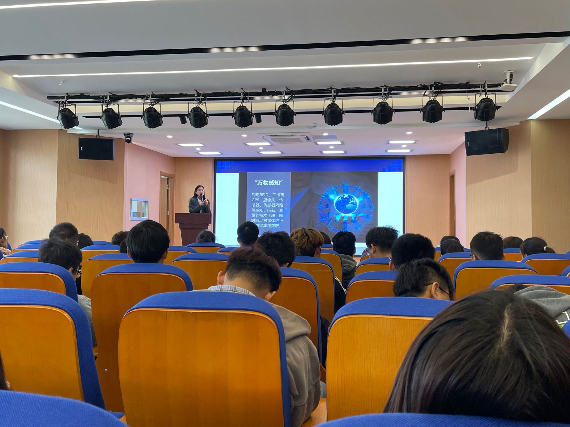 接着,王教授分别从通识教育课程、专业基础课程、专业课程、实践教学环节四方面向同学们介绍了专业课程开设情况,在教授的讲解中,同学们对物联网工程专业有了一定的了解,使同学们对未来即将学习的课程有了一定认识和了解。