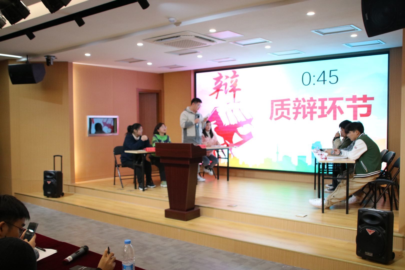 第二场“EDG夺冠,是否支持高校学生在公寓里狂欢”正反方“我说的都对队”和“和谐对”双方争持不下,从EDG夺冠到国家荣耀再到“台湾回归”。双方比赛进行到了总结回陈阶段,双方清晰的思路和精彩的辩词给我们留下了深刻的印象。