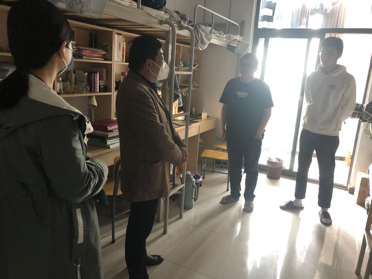 校领导一行深入宿舍,详细了解学生宿舍生活情况及学习生活中存在的困难,并与同学们围绕校园疫情防控政策、线上学习以及职业规划等问题进行了交流。