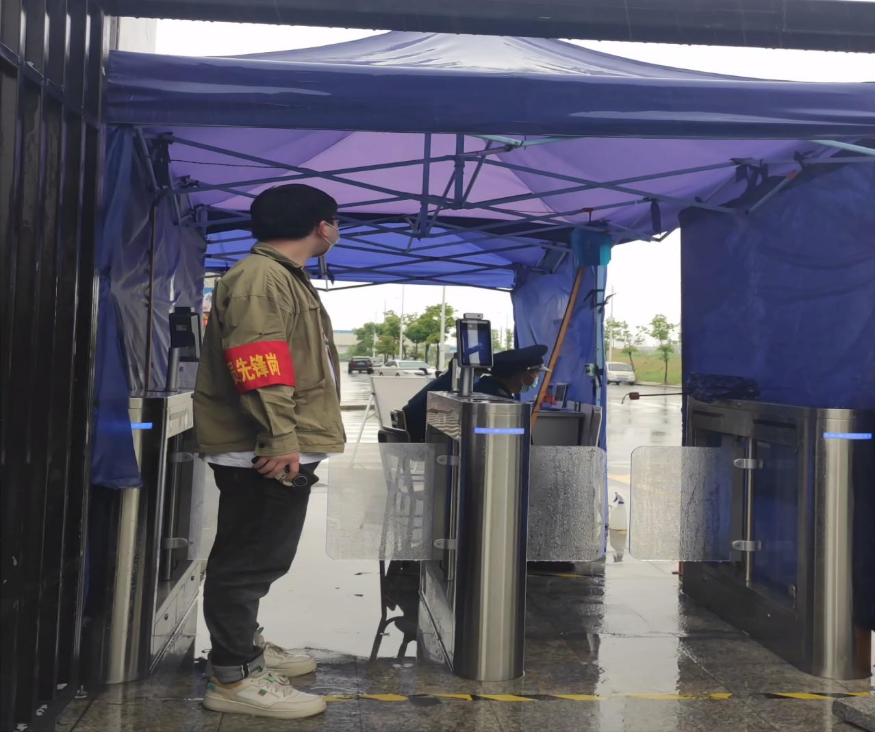 党员们冲锋在前,积极奋战。大家分工合作,监督指导门卫人员核验进出校人员身份、两码、测温等,带着温暖解决师生进出校门时遇到各种实际困难,有条不紊的开展着各项工作。一面党旗、一张桌子、一把椅子、一把体温枪、一个本子,就组成一个疫情防控阵地。党员们佩戴党员徽章,和机电学院学生第一党支部坚持轮流值守,将疫情防控各项举措抓出成效、落到实处,让党徽在校园内熠熠生辉。