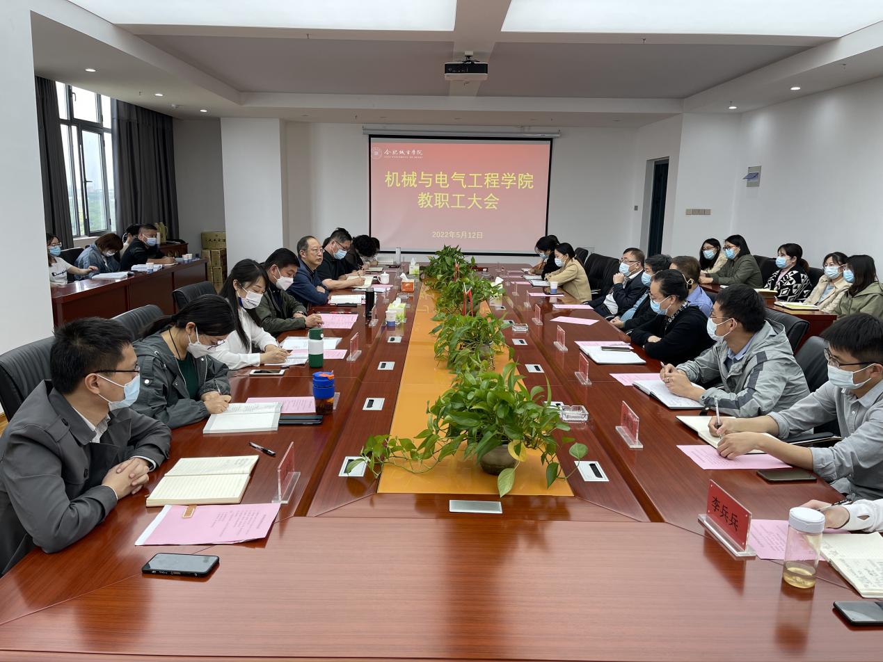 5月12日下午,机械与电气工程学院在北城校区综训楼9楼会议室召开全体教职工大会。星空在线注册(中国)官方网站-注册登录党委副书记、校长祝家贵,党委委员、副校长田园,党委组织部部长、人事处处长罗丽及机电学院全体教职工参会,会议由田园主持。