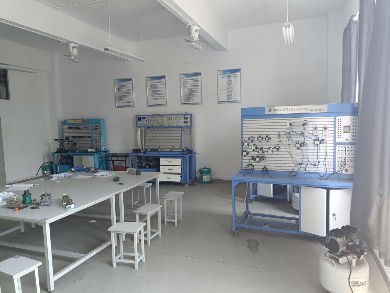 该实验室面积为90m²,拥有液压综合试验台2台、双面气压传动综合试验台2台,电脑3台、立式收纳柜等硬件设备,可为学生提供可靠安全实验、学习场所。