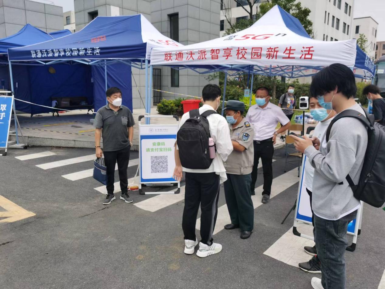 为确保学生返校期间校园安全有序,特设人员通道和行李消杀通道。在专用通道现场,学生们不聚集扎推,保持1米距离,戴好口罩,主动接受体温检测,向工作人员出示48小时内核酸检测阴性报告、安康码、行程码,有序进入校园。