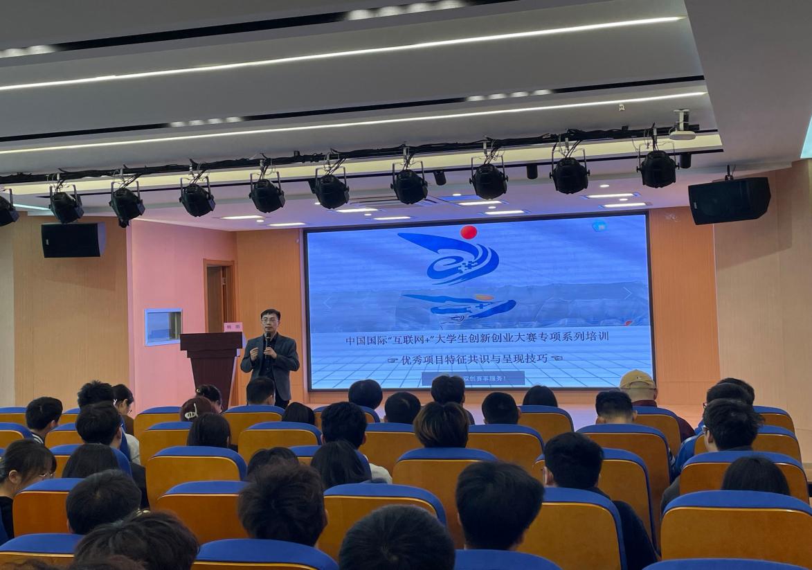 4月24日,在北城校区于综训楼405报告厅内对机电学院师生开展了中国国际“互联网+”大学生创新创业大赛专项系列培训,本次培训会邀请了安徽网赛科技有限公司CEO、中国国际“互联网+”大学生创新创业大赛国赛评审专家杨阳为机电学院创新创业项目团队进行系统指导。