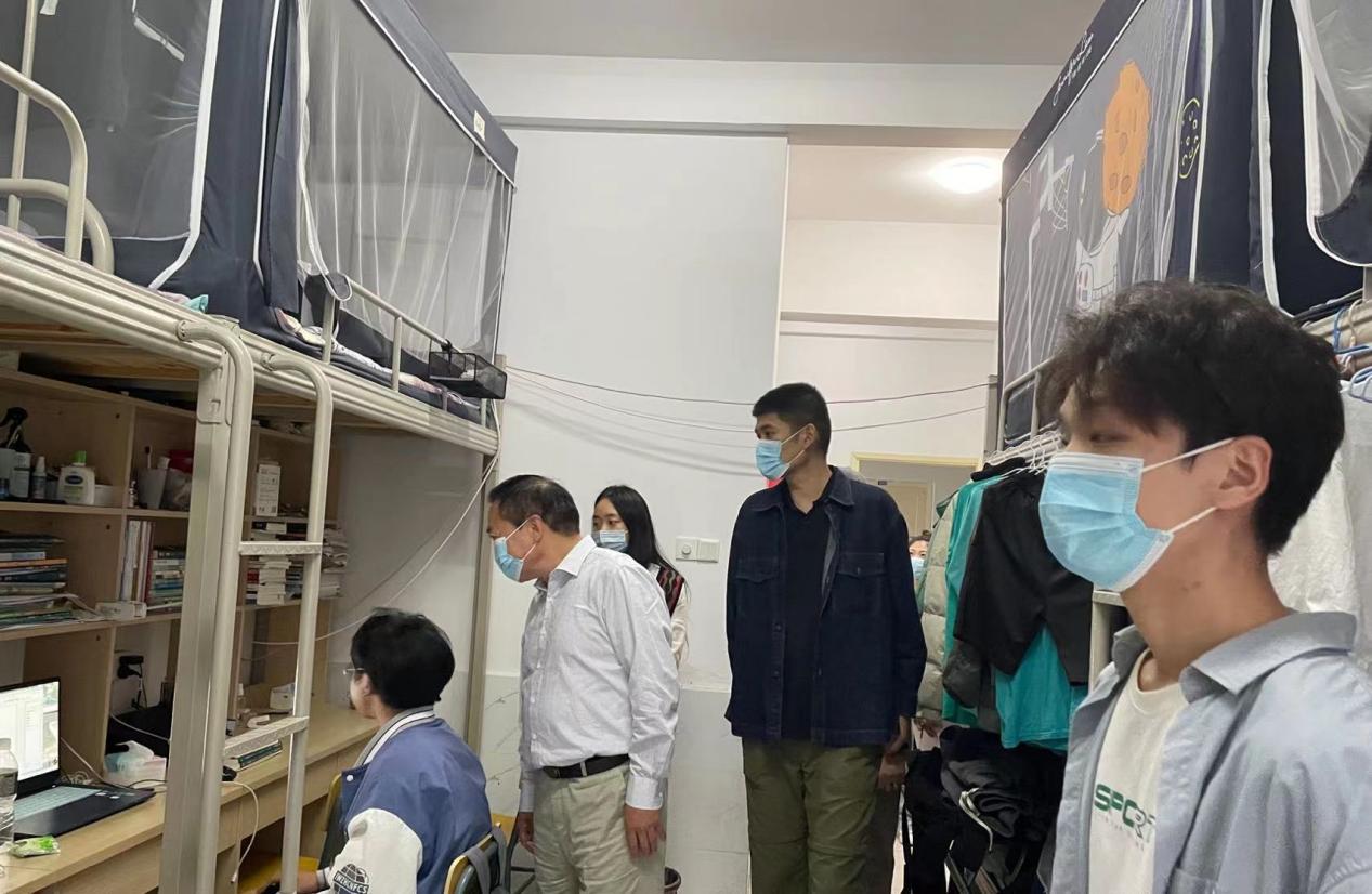 在检查中了解学生平时上课及学习生活的环境,对学生宿舍卫生、用电安全及学生所提出的问题需求等情况现场督办解决。