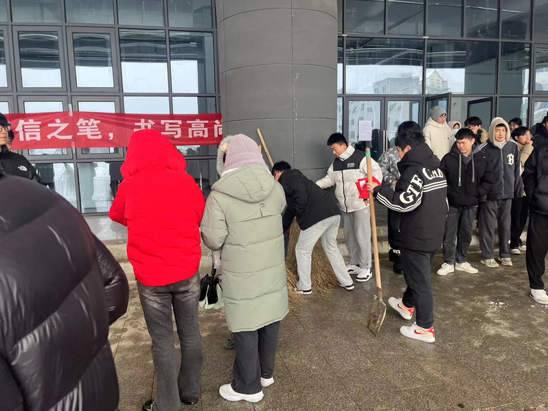 12月18日,大雪纷飞,校园内外银装素裹,景色虽美,却给师生的日常出行带来了诸多不便。为了确保师生安全,营造良好的校园环境,机械与电气工程学院各学生党支部党员在党总支负责人和各支部书记带领下,开展了“我为群众办实事——扫雪除冰”主题党日活动。