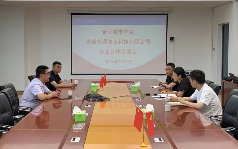 7月5日上午,机械与电气工程学院与安徽芒课教育科技有限公司在综训楼9楼会议室举行校企合作洽谈会。机械与电气工程学院领导班子、安徽芒课教育科技有限公司营销副总经理张辉、营销大区经理王英会参加会议。双方就人才培养、产学研合作、学科竞赛和实习实训等多个方面进行了深入交流与探讨,并达成了多项合作意向。