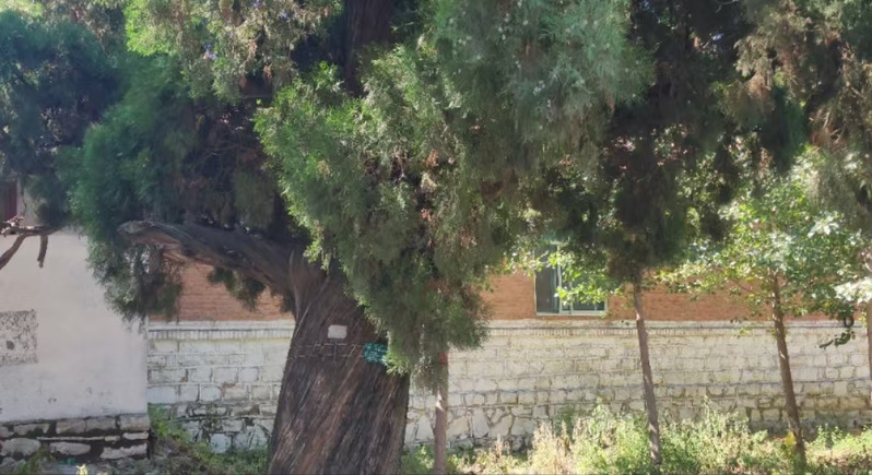 三、文化历史,源远流长。坟台村村址原是周王朝卢王的葬地,后人为祭祀卢王于此修祭坟台一处,后来被人发掘垦为良田。唐朝前后,人们来此建村时,以相传的祭坟台,命名坟台庄,后简称坟台。从西面走进归德镇坟台村,第一眼看到的就是那棵郁郁葱葱,生长依旧旺盛的古柏树。据村民讲述这棵柏树栽种于汉代,建国前柏树旁还立有一块碑刻,介绍着柏树的历史情况。团队一同去参观了这棵古柏树,并体验了村里面的老磨台。