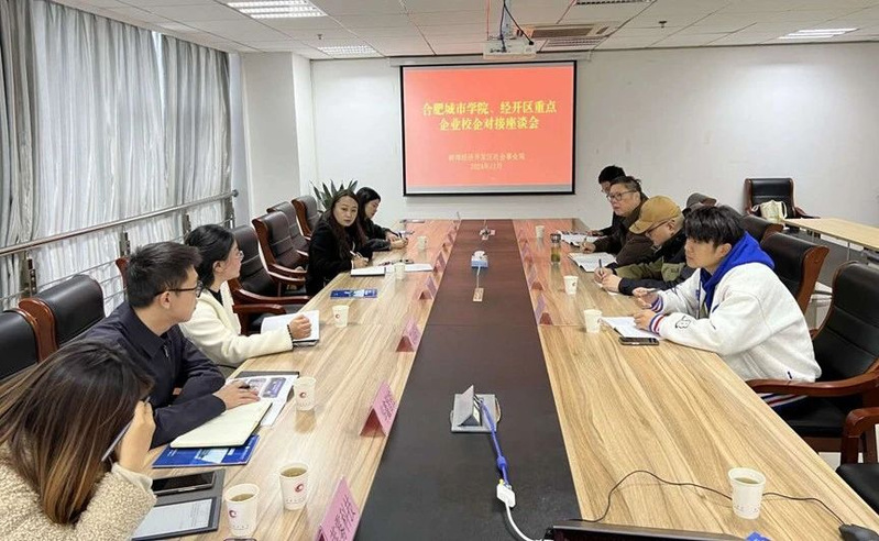 参观结束后,开发区负责人召开了星空在线注册(中国)官方网站-注册登录与经开区重点企业校企对接洽谈会。会上,开发区负责人对刘家琪一行的到来表示热烈欢迎,并详细介绍了中国传感谷的发展历程、产业规划、创新生态建设等方面的情况。他表示传感谷的快速发展离不开科技创新和人才支撑,希望能够与机械与电气工程学院在科研合作、人才培养等方面建立长期稳定的合作关系。安徽芯动联科微系统股份有限公司等区重点企业代表介绍了各自企业发展情况和用工需求,刘家琪介绍了学院的特色专业和学生培养就业等情况。