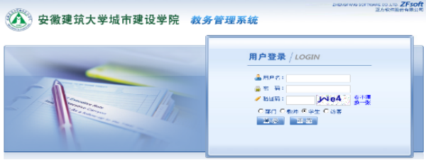 1.请每位学生登录安徽建筑大学城市建设学院教务管理系统,登录地址为:http://172.16.23.244/,或通过校园网-办公系统-正方教务管理系统栏进入。系统登录界面如下图。