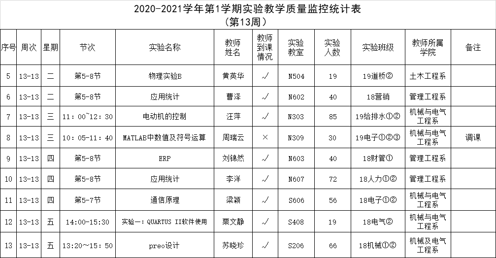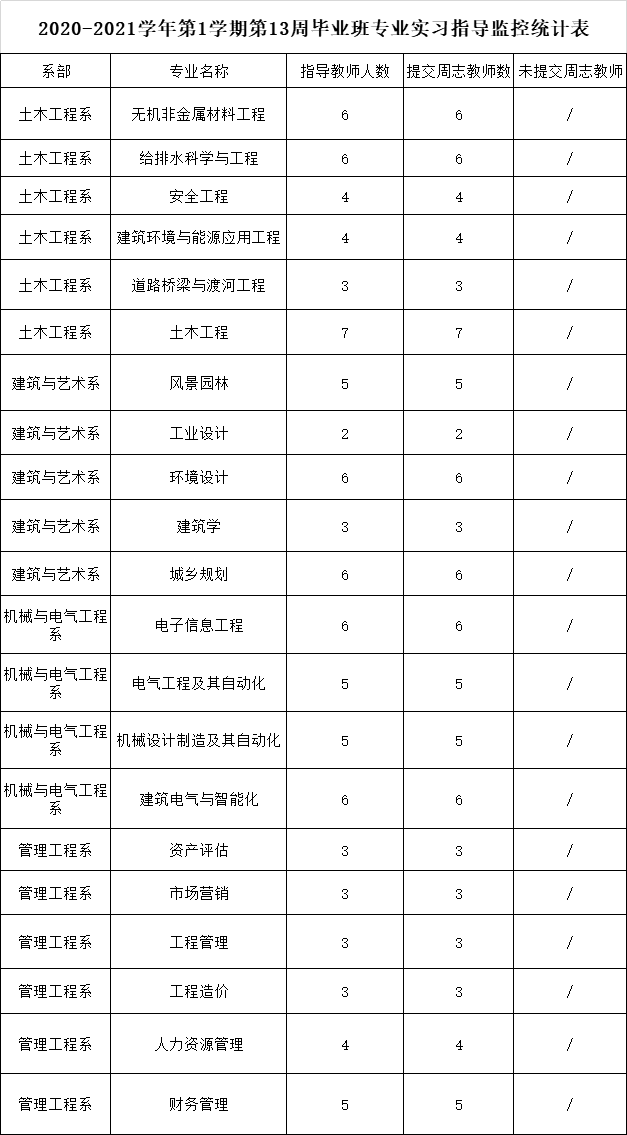 安徽建筑大学城市建设学院课堂教学基本情况检查统计表汇总表 (2020-2021学年第1学期第13周)