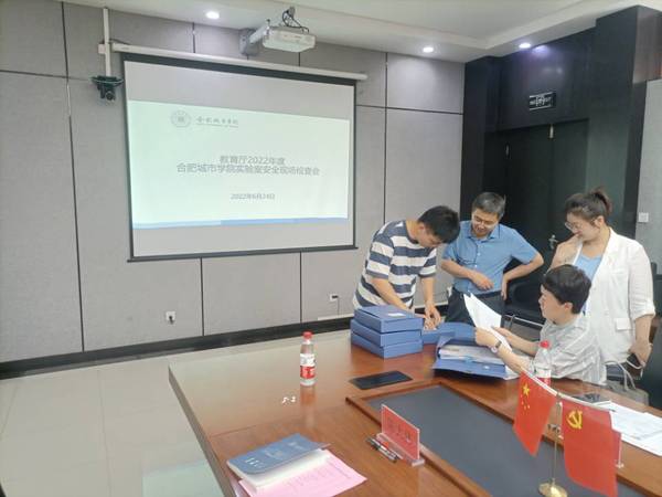6月24日下午,安徽省教育厅2022年高校实验室安全检查组一行四人来我校进行实验室安全现场检查。检查组由陈飞虎教授带队、黄升海教授、张磊教授、汪秀老师组成。校长祝家贵、副校长马建国出席会议。教务处、后勤保卫处负责人及教务处相关人员参加会议,会议由校长祝家贵主持。