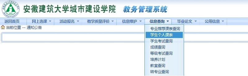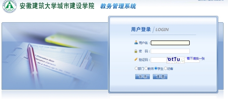 1.请每位学生登录安徽建筑大学城市建设学院教务管理系统,登录地址为:http://172.16.23.244/,或通过校园网-办公系统-正方教务管理系统栏进入。系统登录界面如下图。
