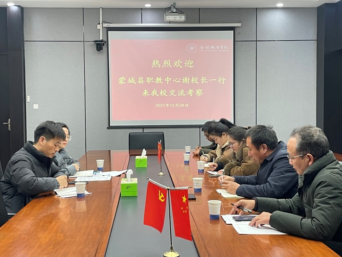12月28日,安徽省蒙城职教中心副校长谢广臣率队一行来我校考察交流。教务处处长陈大伟、副处长李洋接待并出席了交流会。