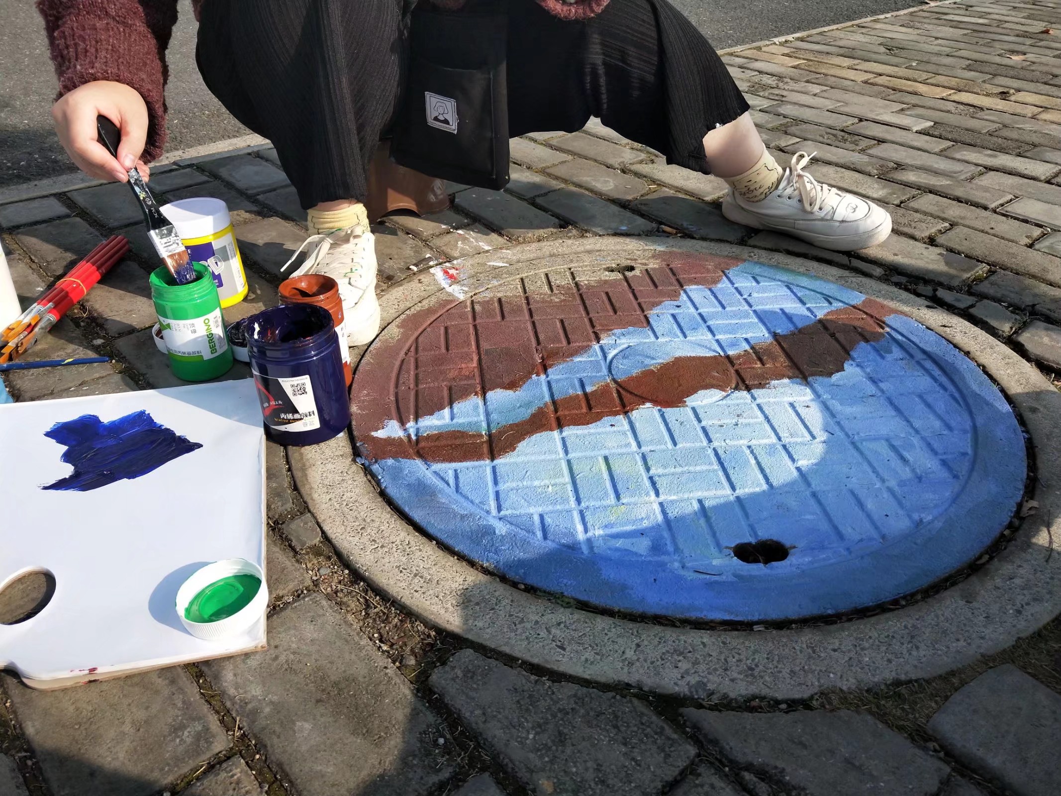 操场上的石墩、小道旁的井盖都是墙绘的范围之内,在每一次的行走中,你就能发现这些可爱的风景了,本来千篇一律的场景变得如此有趣生动,让我们在不经意间就能发现生活中的小确幸。