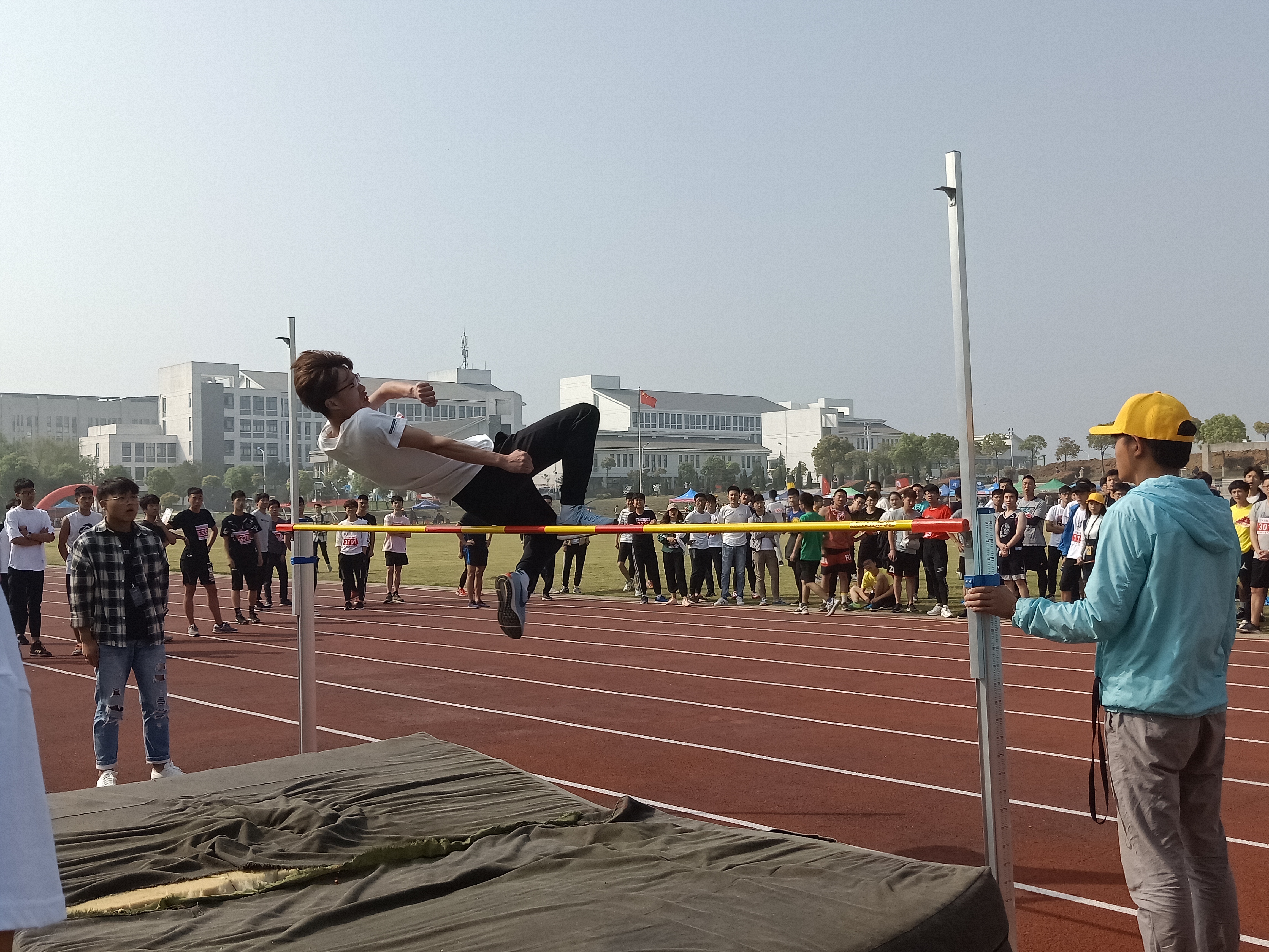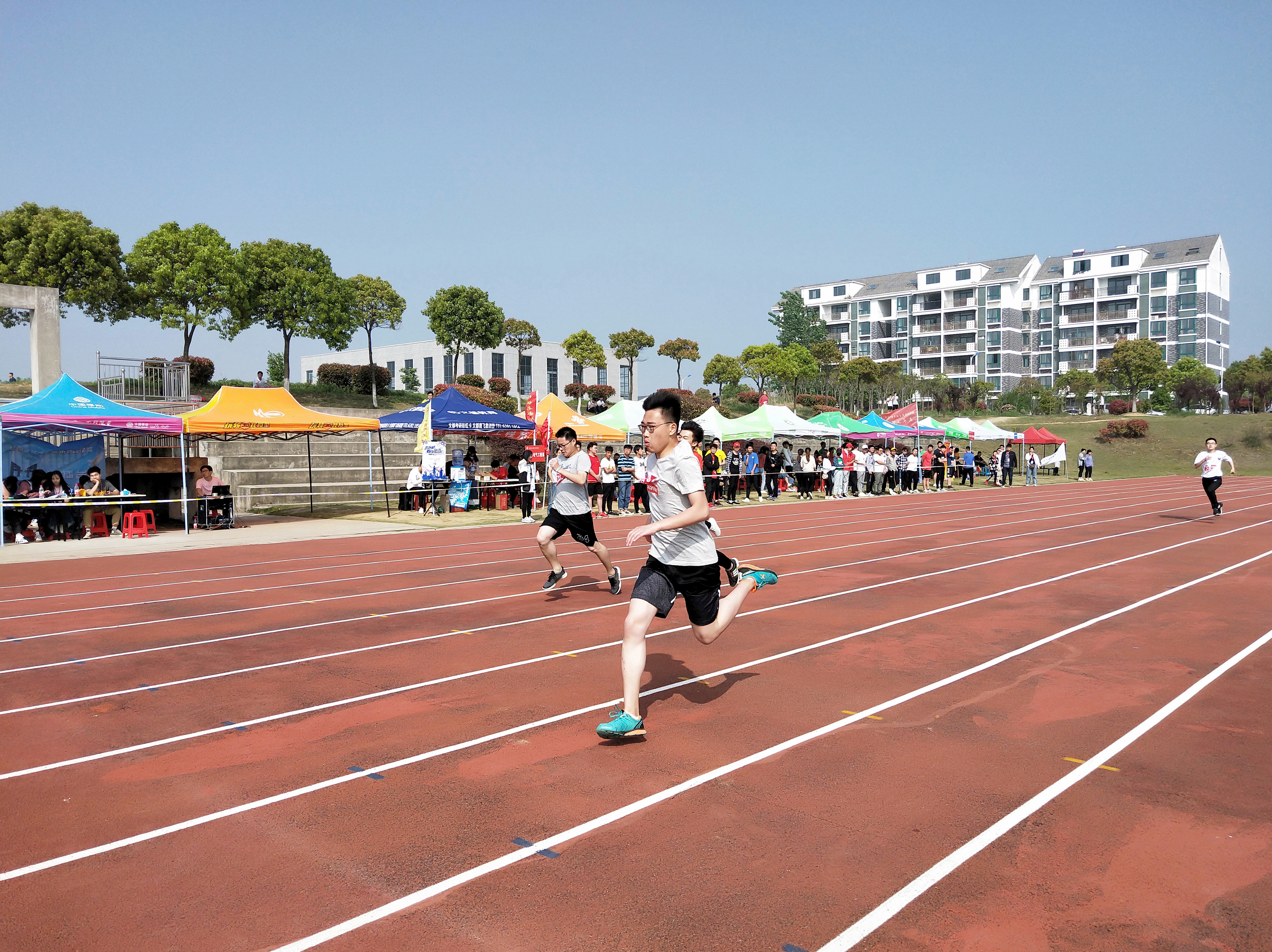校运会使大家汇聚一堂,谱写着拼搏进取之歌,团结协作之歌和奉献扶持之歌。运动员们也不负众望:“重在参与”展现着他们的积极状态,“为班争光”则蕴含着他们的集体主义情怀,“虽败犹荣”更是深含着他们乐观向上的情操。