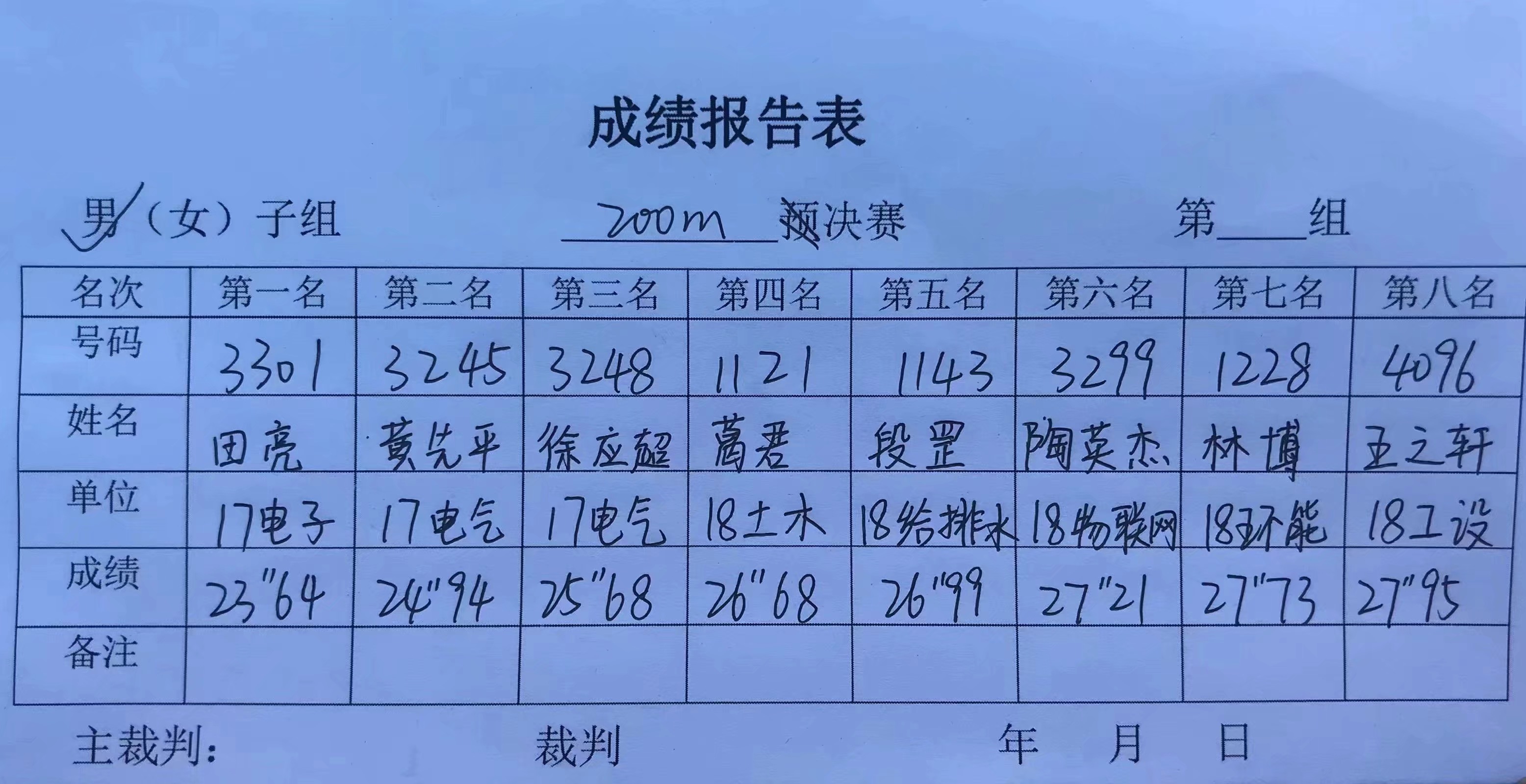 【运动会·建艺系】成绩表