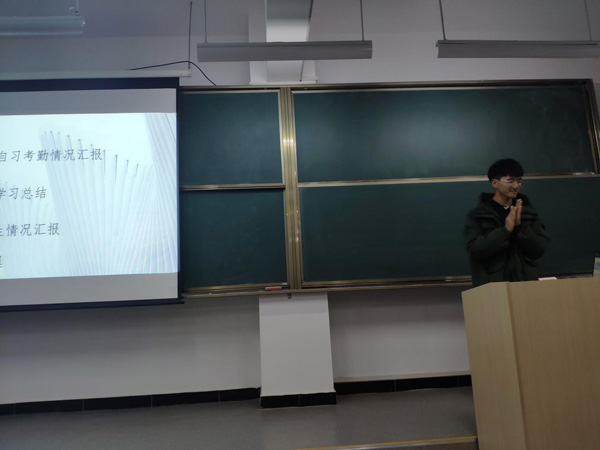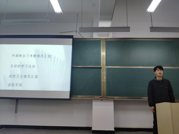 熊阳阳老师发表讲话:在出勤方面,每位班委要起到表率作用,尽到自己的责任,病假需要校医开准假证明,严控划水请假。每周将出勤情况与之前进行对比,对于迟到、早退、旷操情况严重者将会给予处罚(表演才艺、练字帖、俯卧撑),希望每个人都要重视。另外宿舍出入会有人脸识别,大家不要低头或者戴帽子,要确保每次出入都识别成功,每个班级的作业,没有在规定时间上交的直接上报给代课老师。文明礼仪方面,做好一个大学生该做的事,不要在教学区抽烟,一旦被发现就会受到处分,记入档案。每个班级的卫生要仔细打扫,现在星空在线注册(中国)官方网站-注册登录已经将教室卫生和学生的学分制度挂钩,影响学生的评奖评优,大家应重视起来。