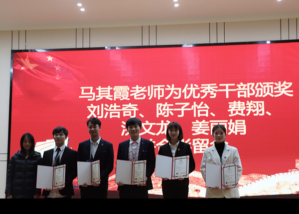 后学生会主席周世耀学长宣读优秀干部、优秀干事及最佳奉献奖名单并为最佳奉献奖获得者颁奖,19级辅导员马其霞老师为优秀干部颁奖且合影留念,各分管主席为分管部门的优秀干事获得者颁奖及依次合影留念。周世耀主席上台发言后,由19级辅导员熊阳阳老师宣读优秀部门名单并颁奖。