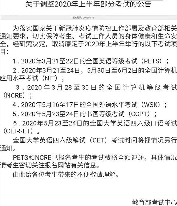 2020年,受新冠肺炎疫情的影响,全国上半年的大型考试采取部分延期,部分取消考试的措施。近日,英语四、六级口语考试的取消,笔试视情况而定的消息也登上了热搜。