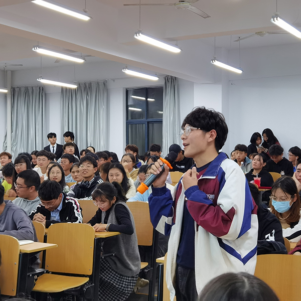 18级环境设计三班团支书严看看、19园林一班班长李国栋现场分享经验、答疑解惑。同学们踊跃提问,两位班委耐心解答,现场气氛热火朝天。