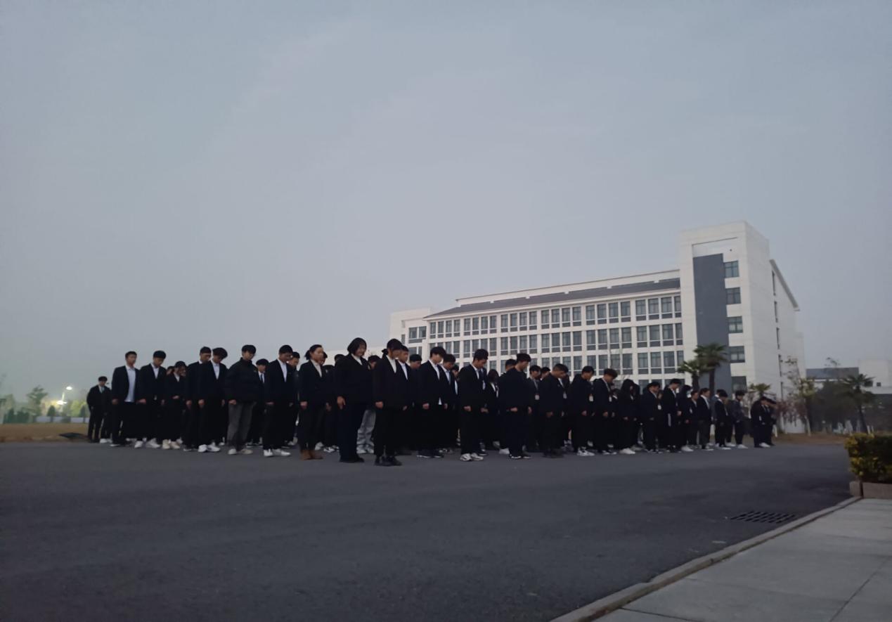 全体成员正装出席,昂首挺胸的站立,随着国歌的响起,五星红旗冉冉升起,随后徐徐半降,这是全体成员为在屠杀中逝去的无辜同胞低头默哀三分钟,铭记历史,不忘国耻。