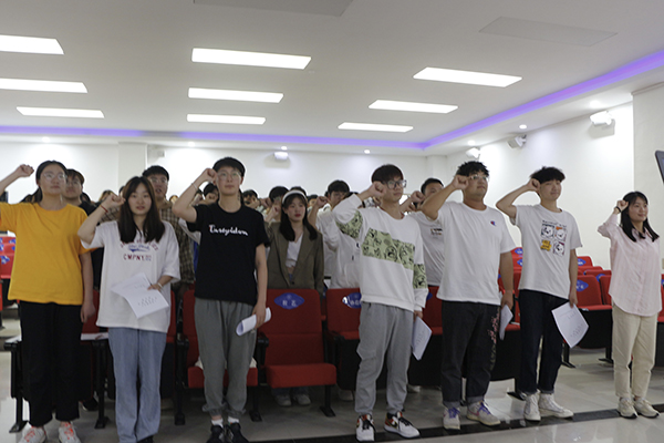 第二阶段由党支部书记马其霞宣布了支部决议,并对党组织新成员的加入表示了热烈的祝贺。接下来在领誓人马其霞的带领下64名预备党员全体起立,面向党旗庄严宣誓,其他同志共同见证了这一神圣的时刻。