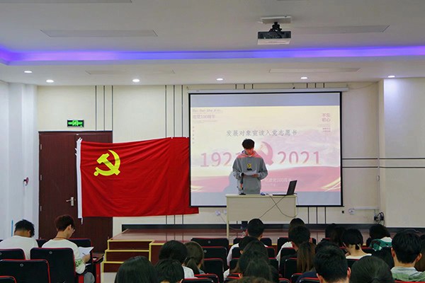 第一阶段是待发展的入党积极分子对入党动机和认识及思想进行自我阐述,并且宣读入党志愿书,发展党员严格按照党员发展程序,经过党支部严格考察和培养,有64名入党积极分子列为发展对象。64名同志作为发展对象依次上台就自己一年来的表现做思想汇报,随后培养人分别介绍发展对象的现实表现;随即党支部的44位具有表决权的正式党员以民主表决的方式进行投票表决。党支部书记马其霞宣读表决结果,全票通过了朱之浩、张浩鑫等64名同志由入党积极分子转为预备党员。
