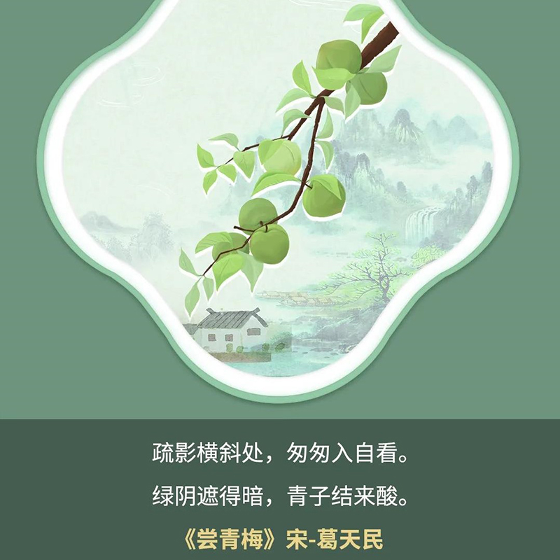 每年五六月是梅子成熟的季节,也因此芒种节气的最佳时令果子是青梅。青梅生食酸脆,色泽清新宜人。此时的芒种是青色的,比蓝色多些灵动,比绿色多些浅淡。在现代室内家装设计中,青色也展现了其知性复古的魅力,时值炎热夏季,涂刷一面青色墙,带给你森林深处的凉意。