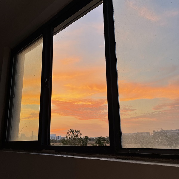 夕阳斜照,光线撒入图书馆的自修室,在考研路上奋斗的同学看到秋天的光辉,也不由停下,忙碌间隙的一个抬头,脑子一下子空下来,什么都不想,什么都忘了。